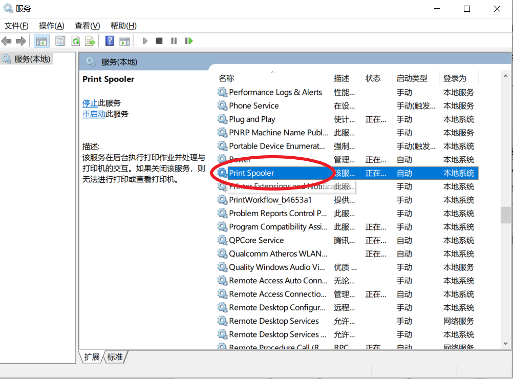8、再次回到打印机服务,启用Spooler服务就可以了。
