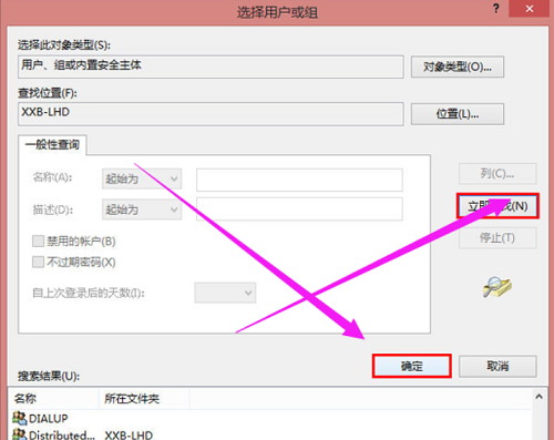 5,在出现的“选择用户或组”的界面,点击“立即查找”,在列表中找到“everyone”,点击“确定”。