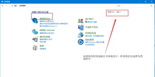 1. 在桌面找到控制面板打开。选择 系统和安全